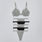 One Lift Up Bra with five String Thongs — all in your pick of shades.